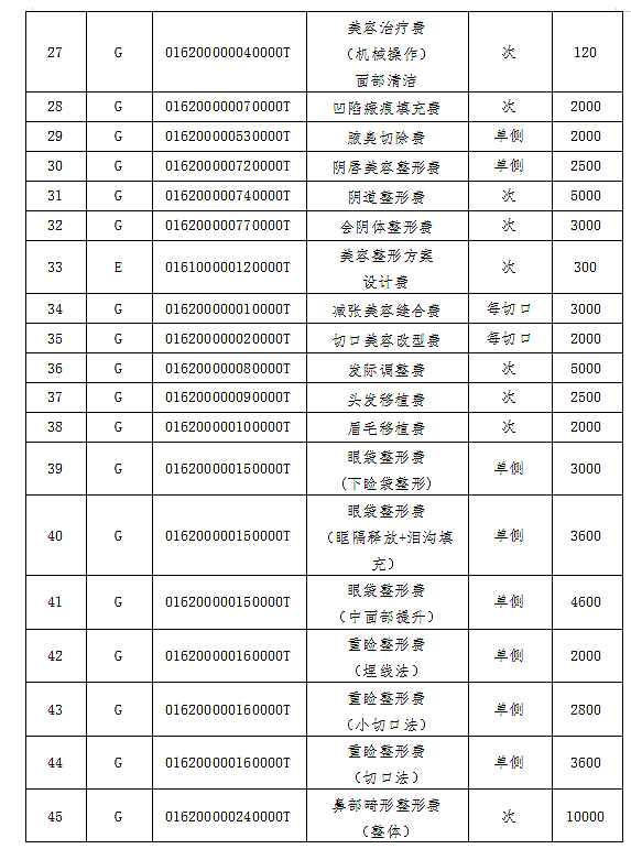一、公示内容:本次公示涉及54项美容整形类项目及其价格。具体内容详见附件。