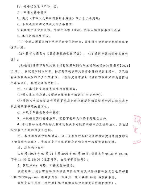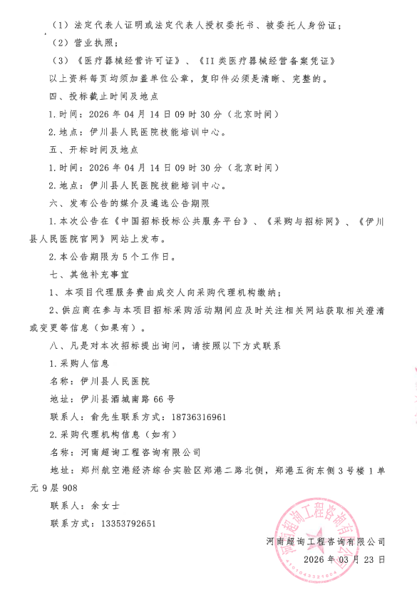 伊川县人民医院2026年第二批院内自行采购项目采购公告