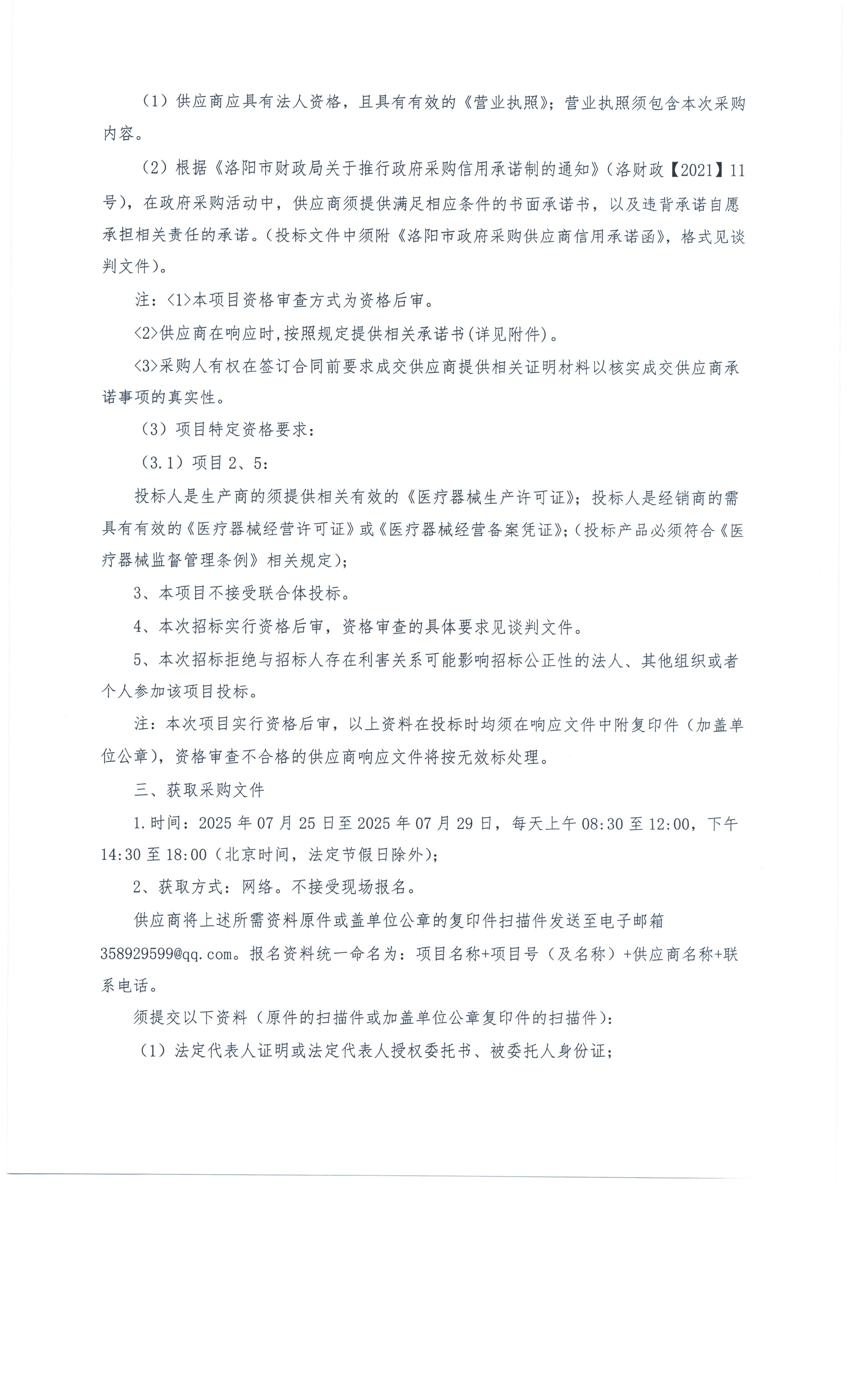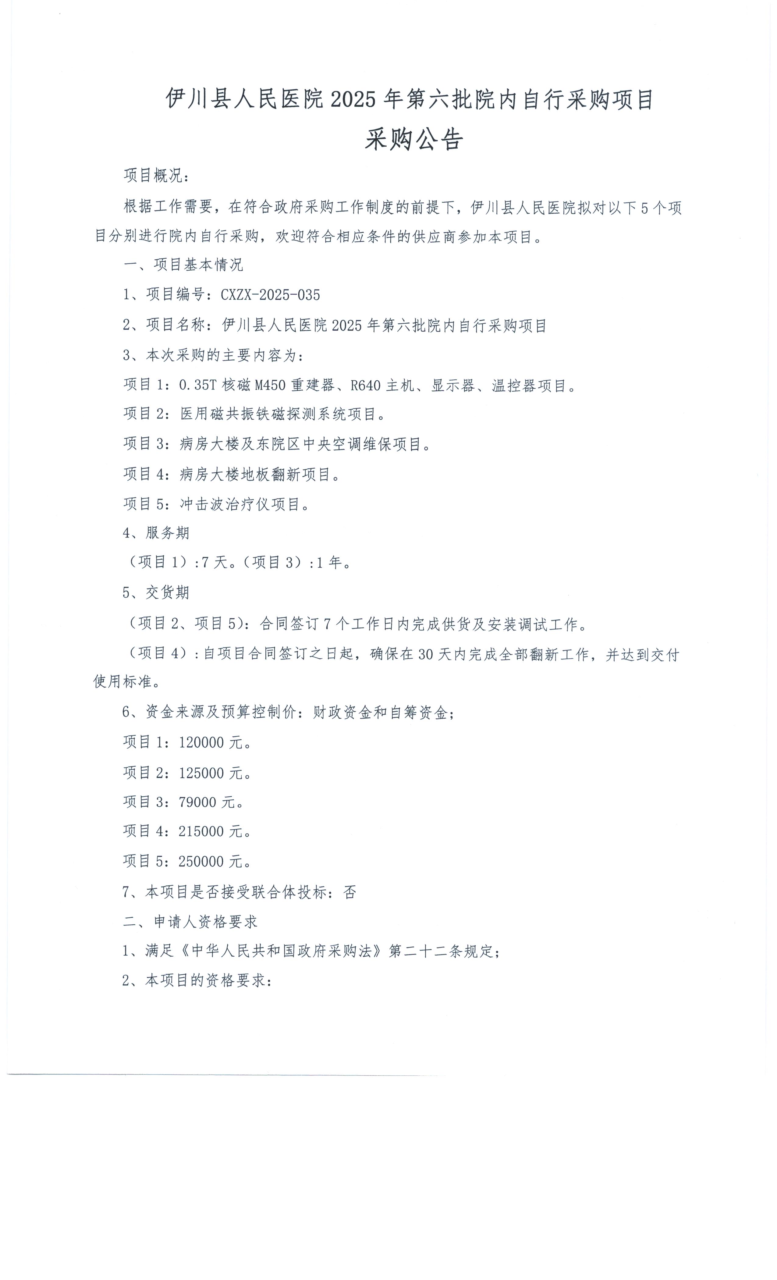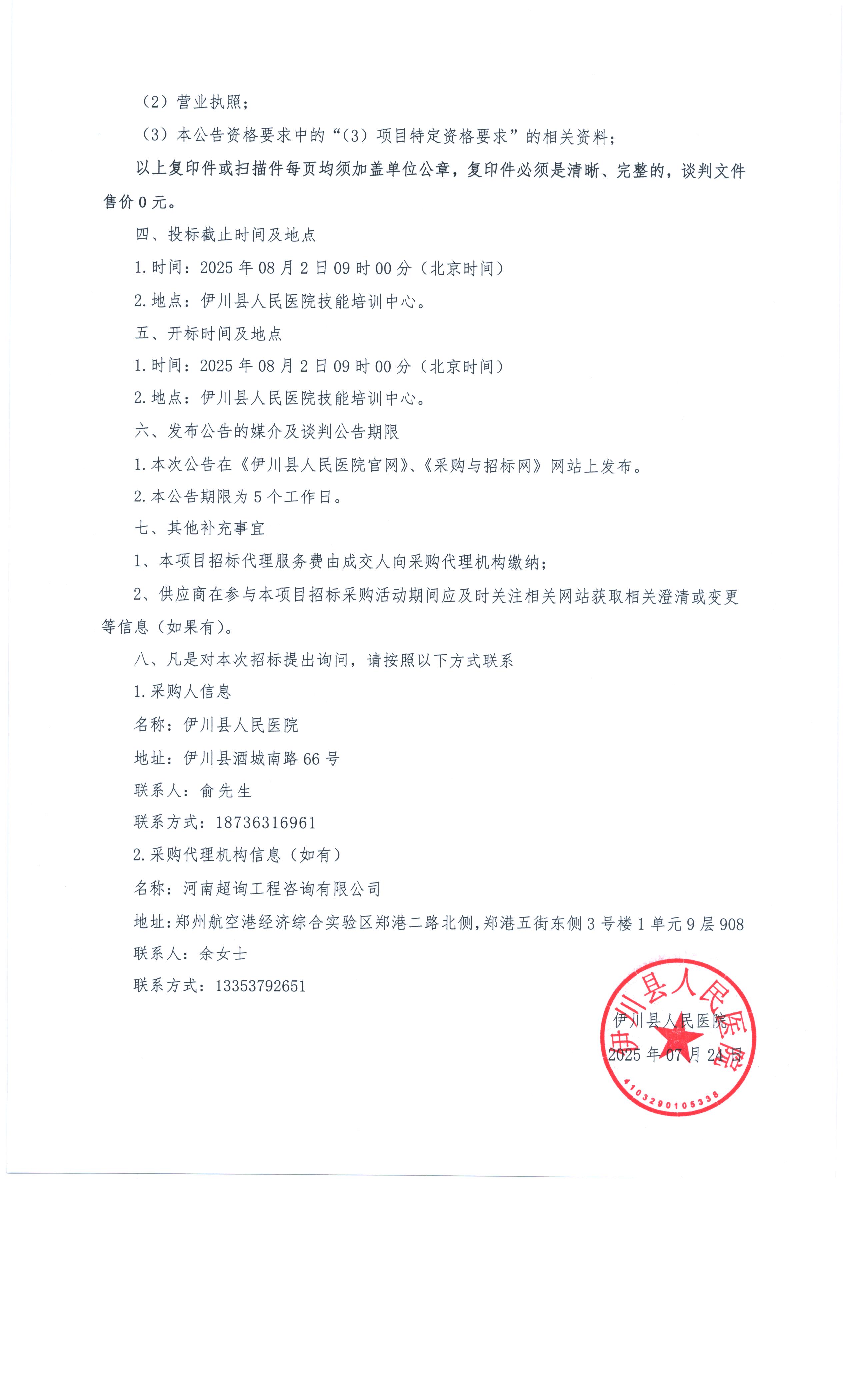 伊川县人民医院2025年第五批院内自行采购项目采购公告