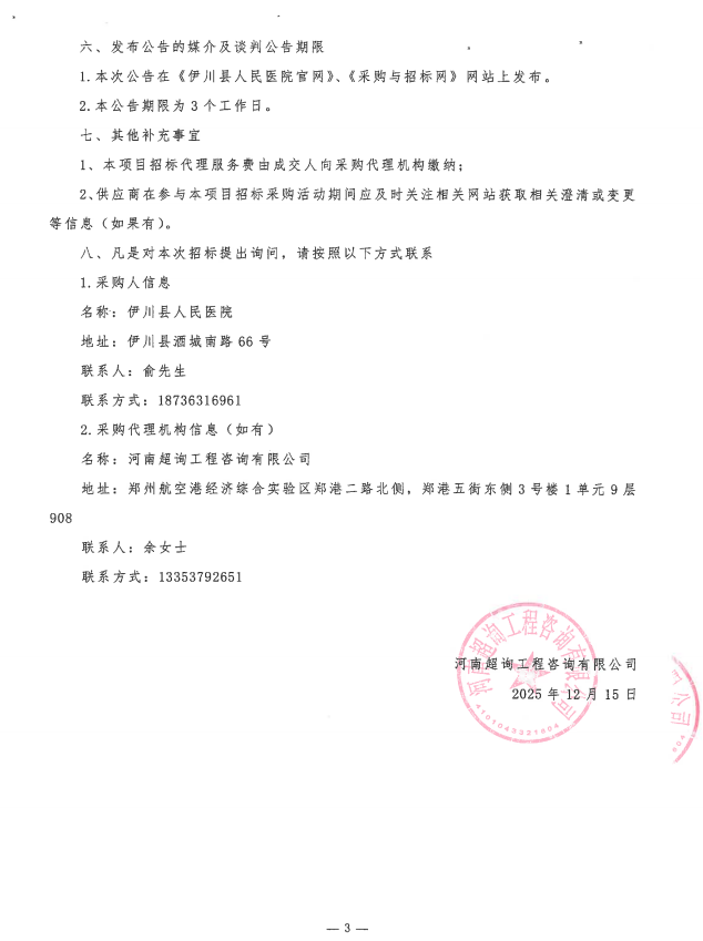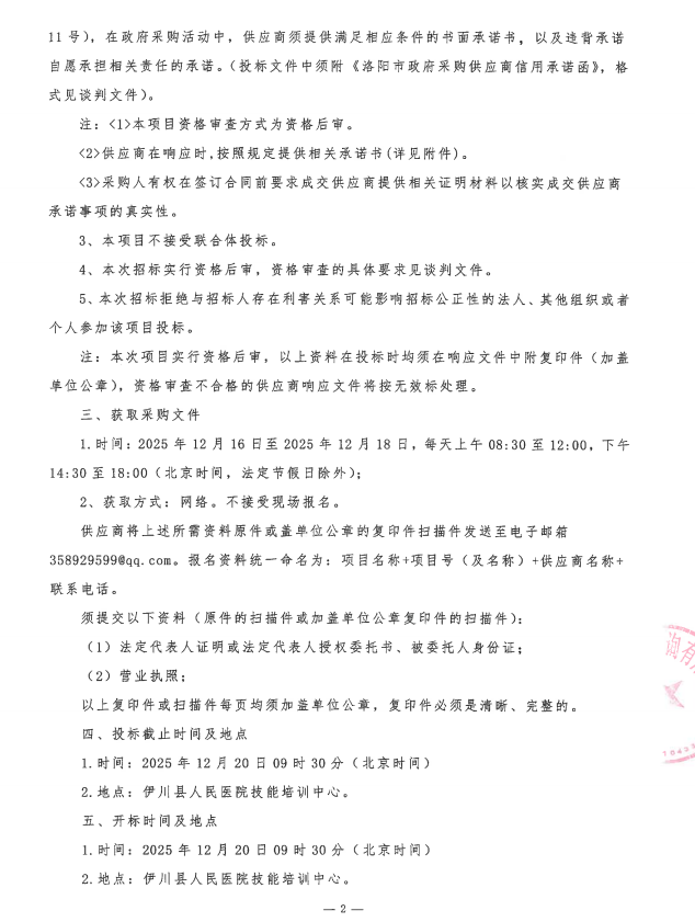 伊川县人民医院2025年第九批院内自行采购项目